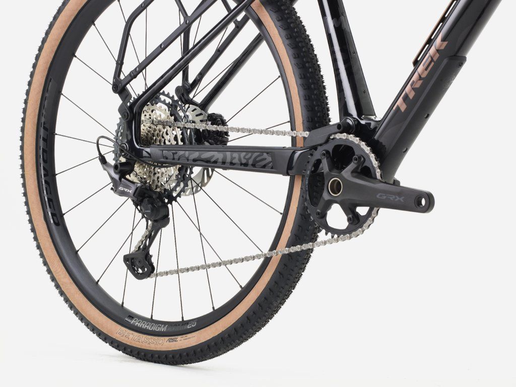 Karbónový rám poskytuje 55 mm zdvihu zadnej nápravy od tlmiča RockShox SIDluxe IsoStrut, zatiaľ čo vidlica RockShox Rudy XL so 60 mm zdvihu vyhladzuje búrlivé cesty a traily. Je pripravený na objavovanie s kolesami Bontrager Paradigm Comp, 12-rýchlostným pohonom Shimano GRX a teleskopickou sedlovkou TranzX.