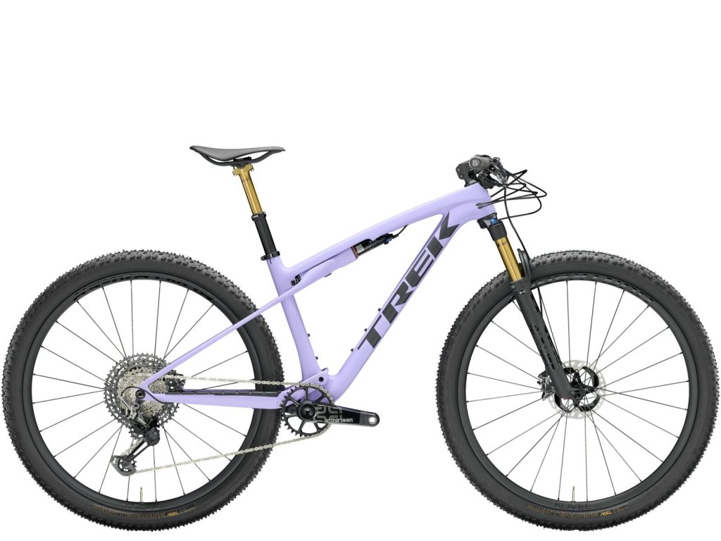 Mimoriadne ľahký rám SLR pre horské bicykle z karbónu OCLV s vysokým modulom pružnosti a modernou XC geometriou. Predné odpruženie so zdvihom 110 mm na vidlici Fox Factory 34 Step Cast, vzduchovým odpružením Float EVOL, patrónou GRIP 2 a dvojitým uzamykaním z riadidiel a zadné odpruženie IsoStrut so zdvihom 80 mm a tlmičom RockShox SIDLuxe. Radenie Shimano XTR Di2 s 12 rýchlosťami, karbónové kolesá Bontrager Kovee RSL, karbónové riadidlá s predstavcom Bontrager RSL, teleskopická sedlovka Fox Transfer SL a hydraulické kotúčové brzdy Shimano XTR M9100.